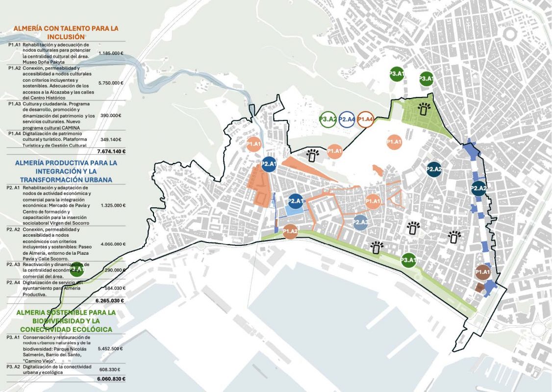 Almería con Talento para la Inclusión pone en valor el patrimonio cultural y social de la ciudad como motor de cohesión, con actuaciones de regeneración urbana, rehabilitación del patrimonio y mejora de la movilidad sostenible. Incluye la rehabilitación y adecuación de nodos culturales como el Museo Doña Pakyta y la creación de un ecosistema digital diseñado para la promoción del patrimonio y la dinamización cultural.